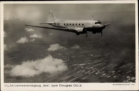 Ak Niederländisches Passagierflugzeug, KLM, Douglas DC 3
