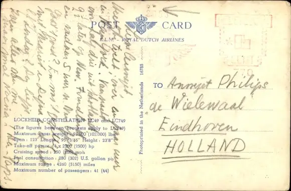 Ak Niederländisches Passagierflugzeug, The Flying Dutchman, KLM, Lockheed Constellation