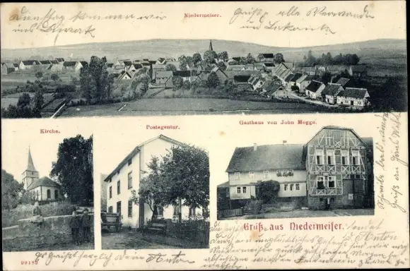 Ak Niedermeiser Liebenau an der Weser, Gesamtansicht, Kirche, Postagentur, Gasthaus