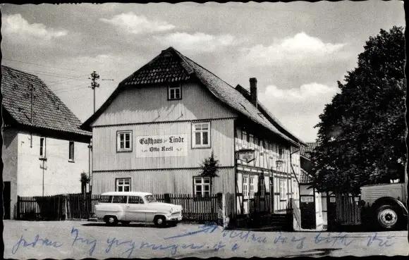 Ak Niedernjesa Friedland, Pensionshaus zur Linde, Parkplatz