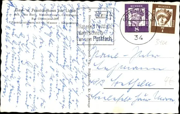 Zustand, siehe Scan, gelaufen, 6, 1963- Ihn.: Otto Kerll - ca 14 cm X 9 cm