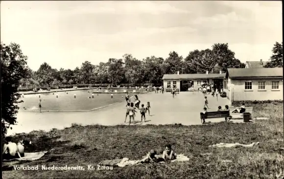 Ak Niederoderwitz, Blick auf das Volksbad, Badegäste