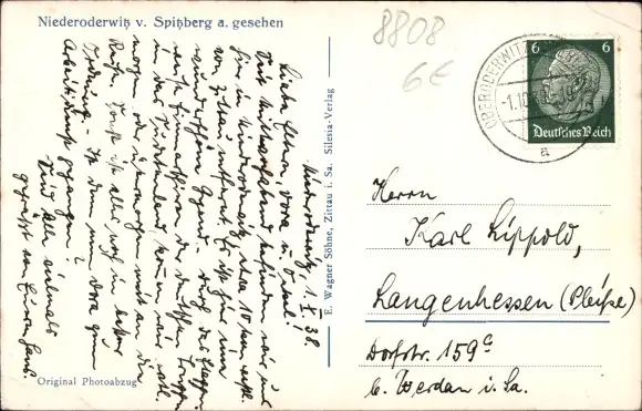 Zustand, siehe Scan, gelaufen, 1938 - ca 14 cm X 9 cm