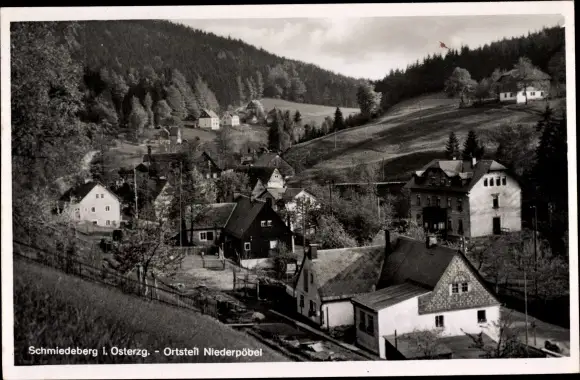 Ak Niederpöbel Schmiedeberg im Erzgebirge, Teilansicht, Häuser