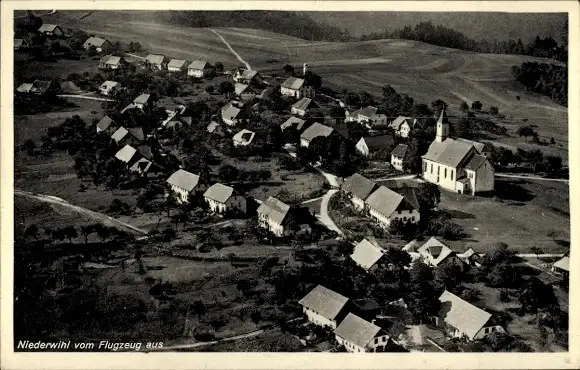 Ak Niederwihl Görwihl in Baden Württemberg, Fliegeraufnahme, Panorama vom Ort