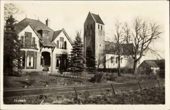 Ak Niekerk Groningen, Kirche, Haus, Straßenpartie
