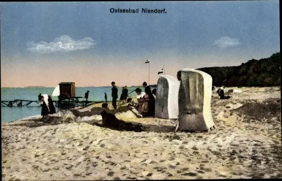 Ak Niendorf Timmendorfer Strand Ostholstein, Strandpartie, Strandkörbe, Besucher, Meer