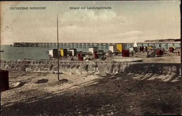 Ak Niendorf Timmendorfer Strand, Strandpartie, Landungsbrücke, Strandwägen