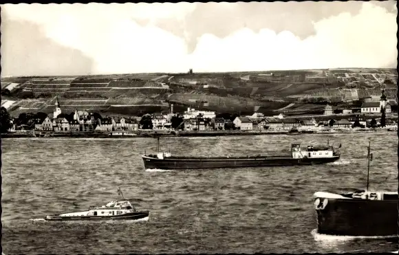 Ak Nierstein am Rhein, Boot, Frachtboot