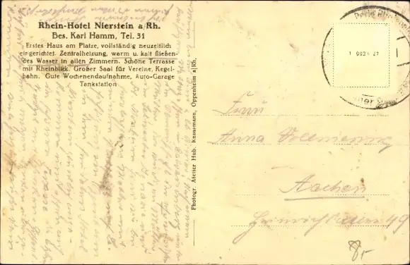 Zustand, siehe Scan, gelaufen- Inh. Karl Hamm - ca 14 cm X 9 cm