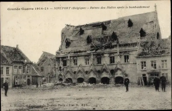Ak Nieuport Nieuport Westflandern, Ruinen der Halles nach einem Bombenangriff