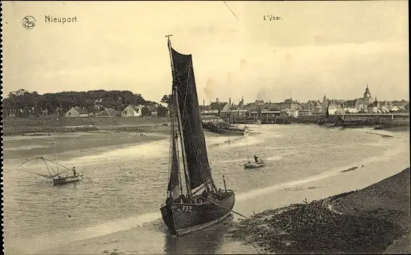 Ak Nieuport Westflandern, The Yser, Segelboot, Kirche