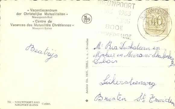 Ak Nieuport sur Mer Westflandern, vue générale du Casino