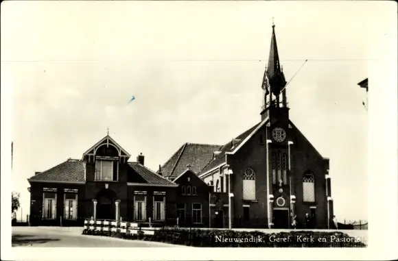 Ak Nieuwendijk Nordbrabant, Geref. Kerk en Pastorie
