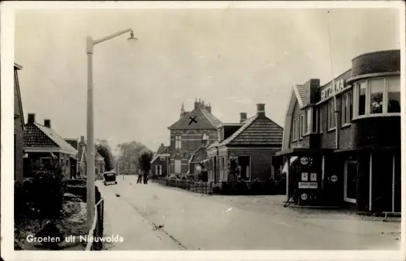 Ak Nieuwolda Groningen, Straße, Tankstelle