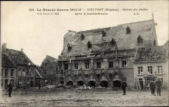 Ak Nieuwpoort Westflandern, bombardierte Häuser