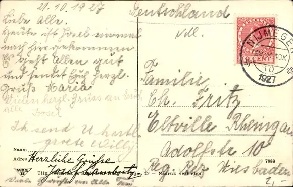 Zustand, siehe Scan, gelaufen, 1927 - ca 14 cm X 9 cm