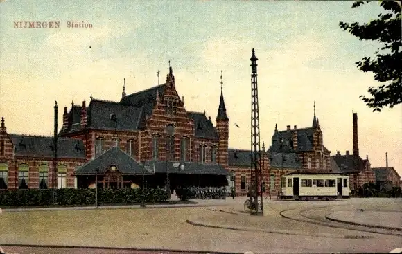 Ak Nijmegen Gelderland, Bahnhof, Straßenbahn