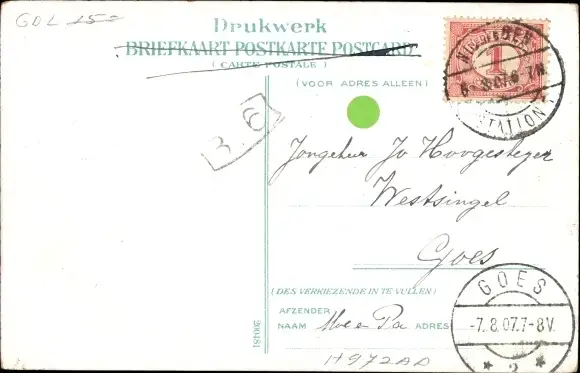 Zustand, siehe Scan, gelaufen, 1907 - ca 14 cm X 9 cm
