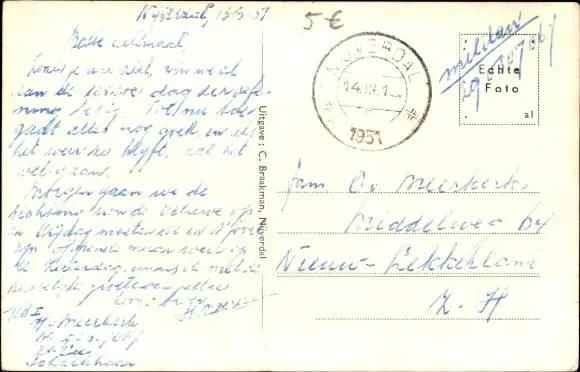 Zustand, siehe Scan, gelaufen, 1951 - ca 14 cm X 9 cm