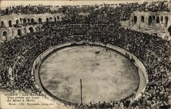 Ak Nimes, Stierkampf Arena, Vue prise un jour de Mise a Mort