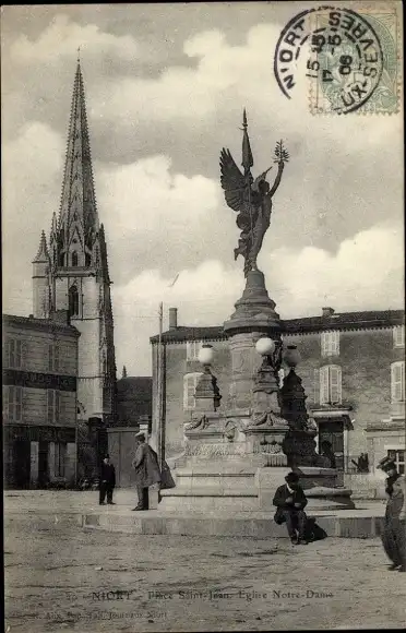 Ak Niort Deux Sèvres, Place Saint-Jean, Kirche Notre-Dame, Denkmal