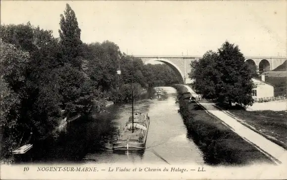 Ak Nogent sur Marne Val de Marne, Viaduc, Chemin du Halage