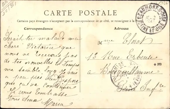gelaufen 1905, Eckknicke, sonst guter Zustand