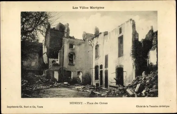 Ak Nomeny Meurthe et Moselle, Place des Ormes, Ruines