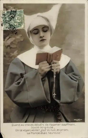Ak Nonne beim Lesen, Rosenkranz, Porträt