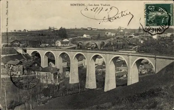 Ak Nontron Dordogne, les deux Viaducs