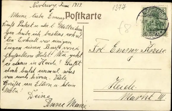 gelaufen 1913, leicht fleckig, sonst guter Zustand