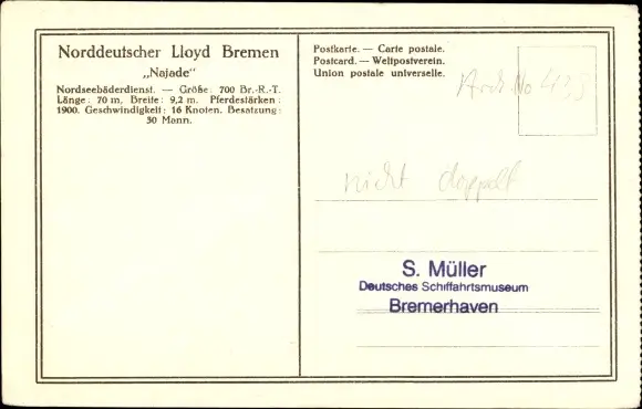 Ak Norddeutscher Lloyd Bremen, Dampfer Najade
