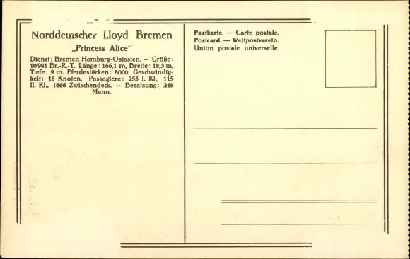 Ak Norddeutscher Lloyd Bremen, Dampfer Princess Alice