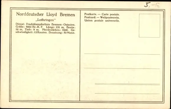 Ak Norddeutscher Lloyd Bremen, Frachtdampfer Lothringen