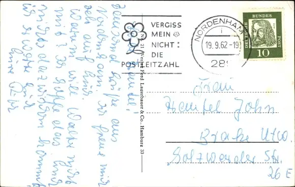 Zustand, siehe Scan, gelaufen, 1962 - ca 14 cm X 9 cm