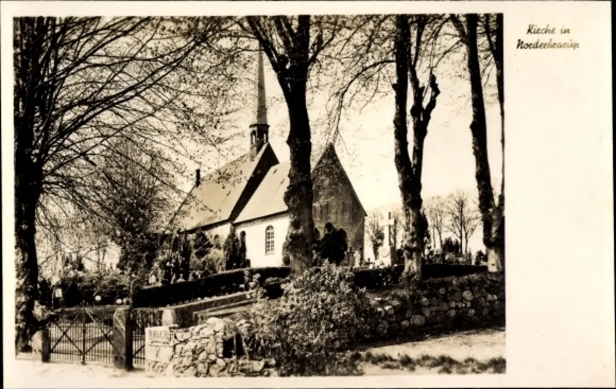 Ak Norderbrarup, Teilansicht der Kirche mit Friedhof