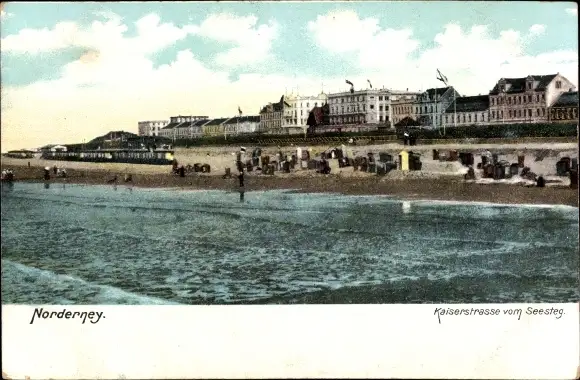 Ak Norderney in Ostfriesland, Kaiserstraße vom Seesteg, Strand