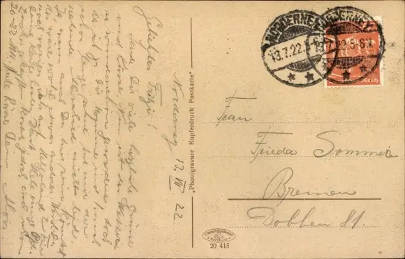 Zustand, siehe Scan, gelaufen, 1922 - ca 14 cm X 9 cm