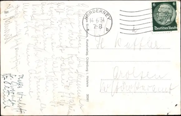 Zustand, siehe Scan, gelaufen, 1934 - ca 14 cm X 9 cm