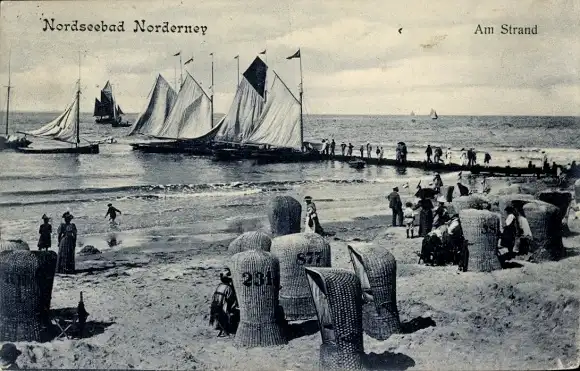 Ak Norderney in Ostfriesland, Strand, Segelboote