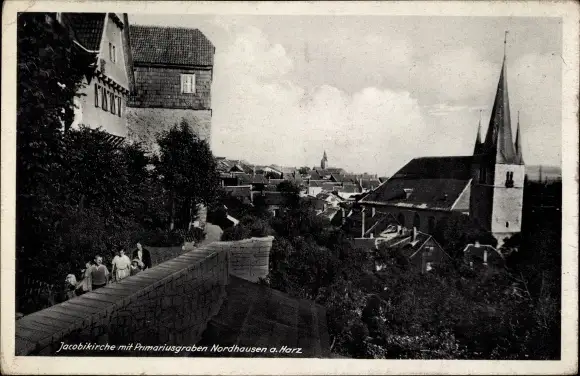 Ak Nordhausen am Harz, Jacobikirche, Primariusgraben, Kirchturm