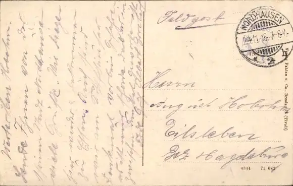 Zustand, siehe Scan, gelaufen, 1915 - ca 14 cm X 9 cm
