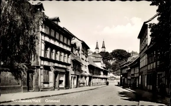 Ak Nordhausen in Thüringen, Grimmel, Straßenansicht, Fachwerkhäuser