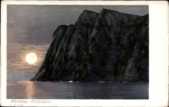 Ak Nordkap Norwegen, Midnatssol, Küstenlandschaft