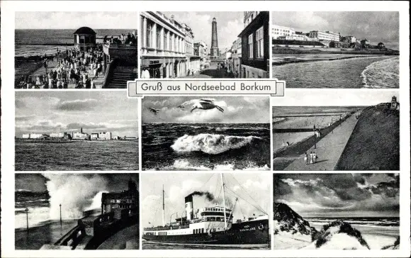 Ak Nordseebad Borkum in Ostfriesland, Leuchtturm, Strand, Dampfer, Promenade