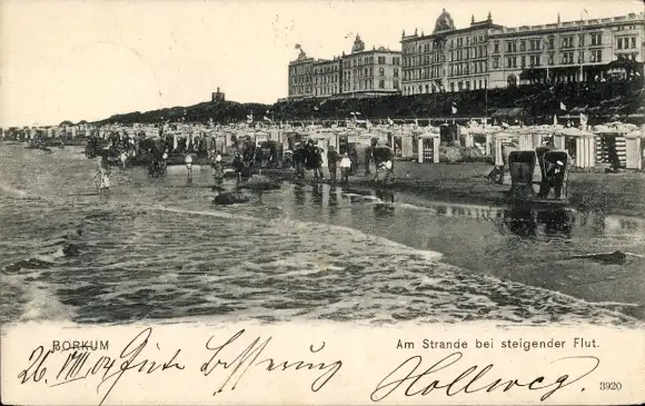 Ak Nordseebad Borkum in Ostfriesland, Strand, steigende Flut
