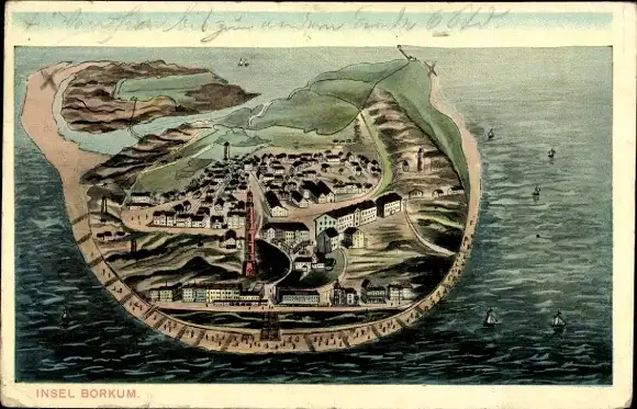 Ak Nordseebad Borkum in Ostfriesland, Totalansicht, Leuchtturm