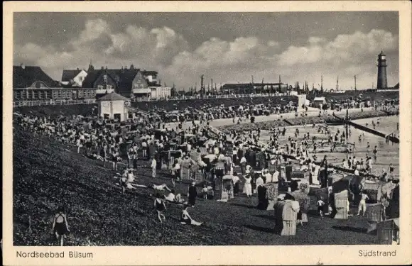 Ak Nordseebad Büsum, Am Südstrand mit Leuchtturm