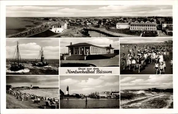 Ak Nordseebad Büsum, Gesamtansicht, Boote, Leuchtturm, Strand